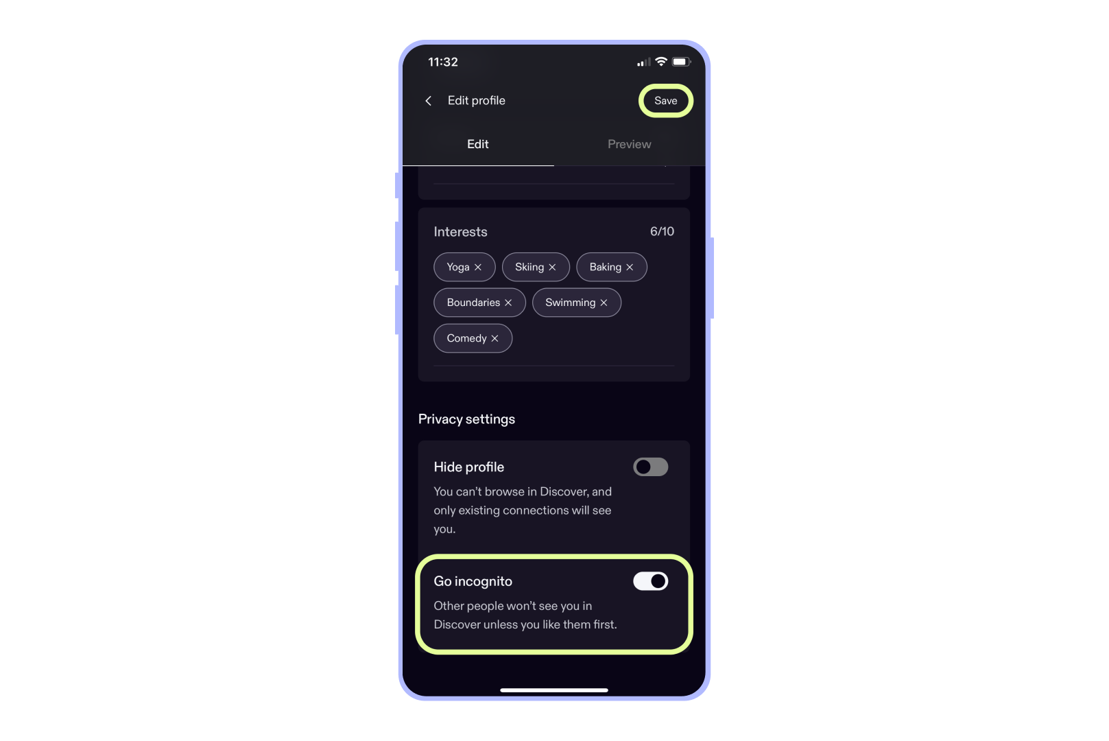 - With incognito enabled, you won’t be able to see profiles of others who are also incognito—meaning that two incognito members won’t be able to connect. Ships in the night! It’s almost romantic.