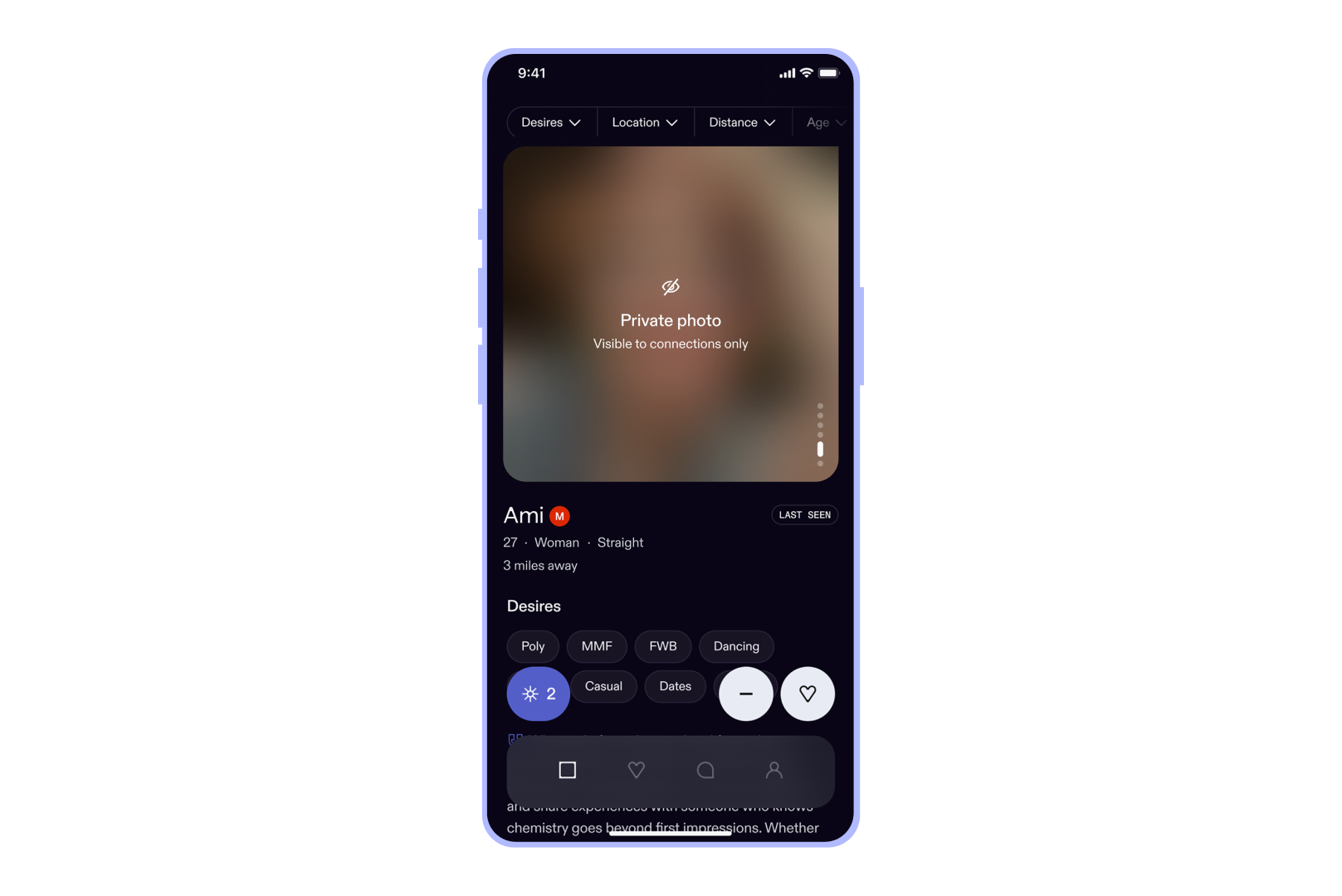 Our priority is ensuring that you have a safe, comfortable, and meaningful experience on Feeld. These features give you the freedom to control how you show up on the app, and how others can engage with you—paving the way for enriching exploration.