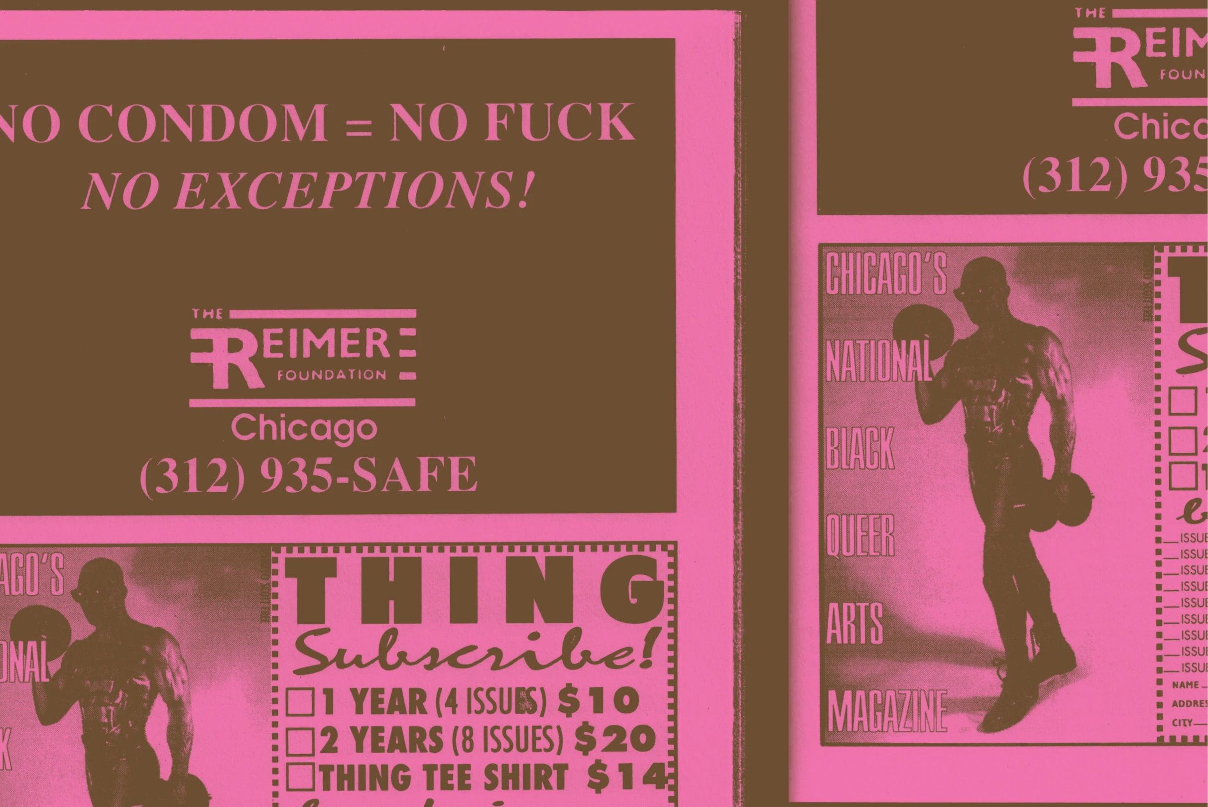 In 1989, three Black gay men from the South Side of Chicago—Robert Ford, Trent Adkins, and Lawrence D. Warren—started THING. It was a kind of grassroots publication that captured the essence of a special subcultural corner of the world—Black, gay, house culture and politics, at once very specific to its time, yet timelessly resonant; a zine that was both very Chicago, while reaching far beyond the geographic bounds of its makers. THING existed in the way only a project of collaboration, immersed in the world it also reflected, could be. THING featured interviews with prominent Black queer figures of the time, like the academic and poet Essex Hemphill, and filmmaker Marlon Riggs, whose seminal documentary, Tongues Untied, came out the same year as the zine’s first issue. Adkin’s “Tee” column included stories about Chicago’s Black and gay party scene, documenting minute yet profound changes as they were happening.